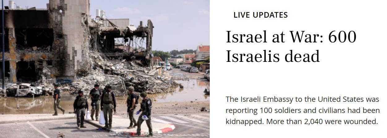7 жовтня 2023 року Ізраїль зазнав масованого ракетного обстрілу з боку сектору Газа. Відповідальність за атаку взяло на себе палестинське угруповання ХАМАС.