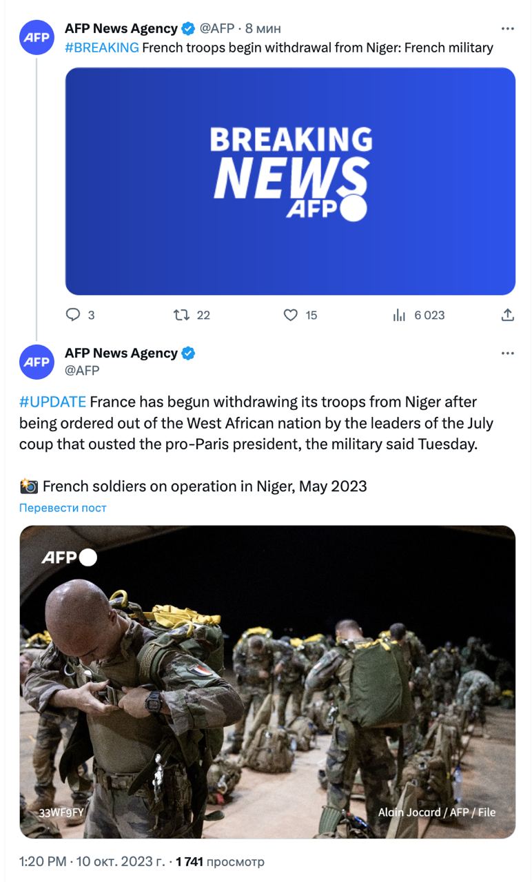 Раніше повідомлялося, що бунтівники в Нігері вимагали виведення французьких військ із країни. Перед цим військові, які захопили владу в Нігері, зажадали від посла Франції залишити країну протягом 48 годин, але посол відмовився їхати і не став зустрічатися з новою владою країни, вважаючи військовий переворот незаконним.