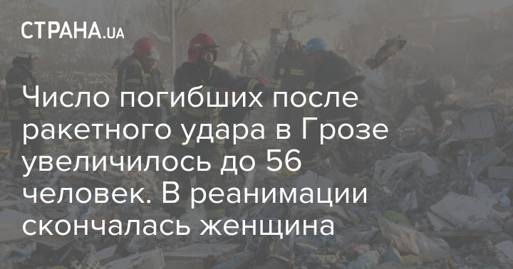 Число загиблих у Грозі збільшилося до 56 осіб