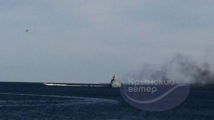 На рейді біля Севастополя спалахнув російський ракетний корабель. Відео та фото