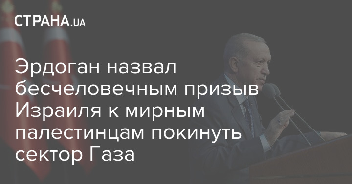 Президент Туреччини Реджеп Тайіп Ердоган прокоментував заклик Ізраїлю до палестинців швидко покинути північ сектору Газа. Політик назвав його "неприйнятним" та нелюдським.
