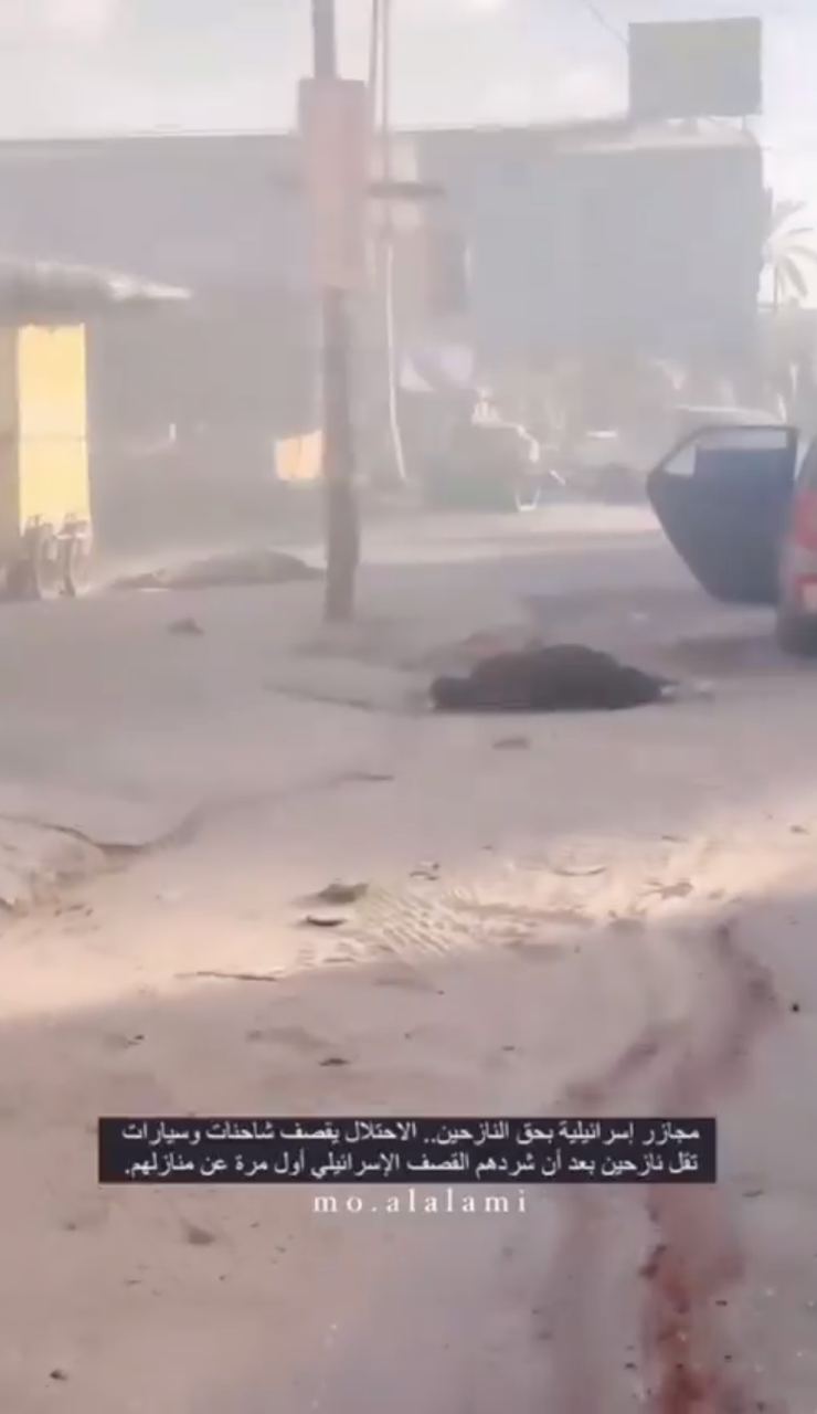 На ролику видно мертві тіла, що лежать на вулиці Салах-ад-Діна в Газі, зокрема кількох маленьких дітей. Раніше там рухалися колони з біженцями.