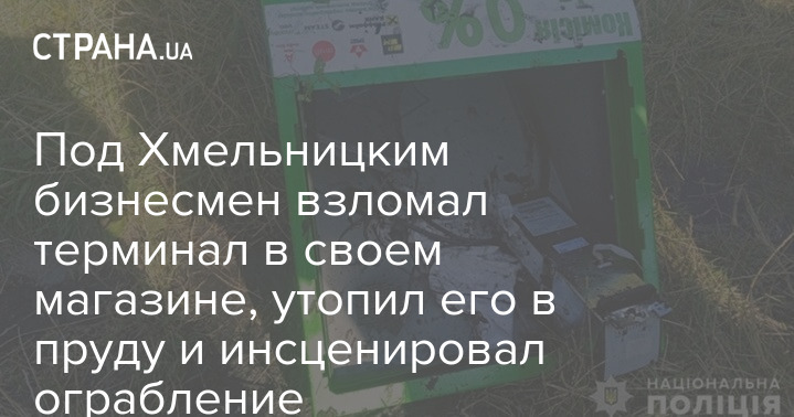 Під Хмельницьким бізнесмен зламав термінал у своєму магазині, втопив його у ставку та інсценував пограбування