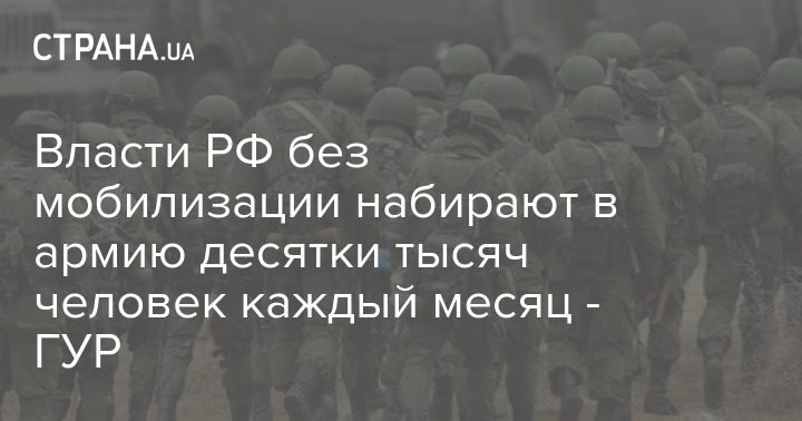 Представник ГУР Міноборони Андрій Юсов заявив, що влада РФ без мобілізації набирає в армію десятки тисяч людей щомісяця.