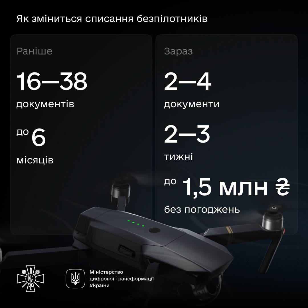 Раніше, щоб отримати нові дрони, потрібно було списати старі, які були знищені чи пошкоджені під час бойового завдання. Для цього військовим потрібно було до шести місяців оформлення паперів.
