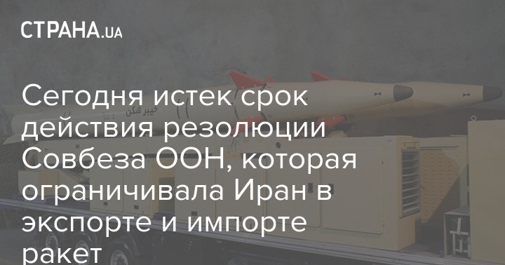 Сьогодні минув термін дії резолюції Радбезу ООН, яка обмежувала Іран в експорті та імпорті ракет