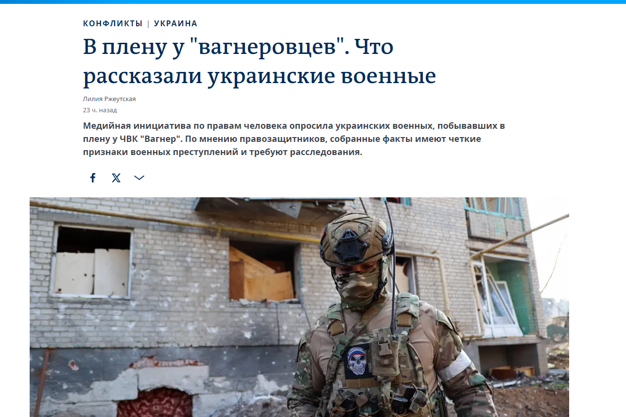 Так, військовослужбовець 17-ї танкової бригади ЗСУ став свідком масової кари "вагнерівцями" військовополонених українців. Він був одним із трьох осіб, кого залишили живими в групі з 20 осіб.