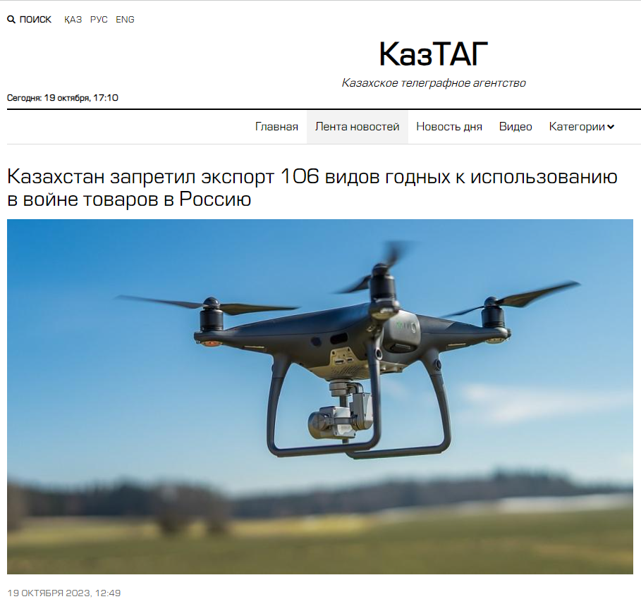 Йдеться про товари як казахстанських, так і іноземних виробників. Зокрема, про запчастини для дронів, спеціальну електроніку, чіпи і так далі.