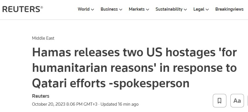 За даними ЗМІ, ХАМАС звільнив двох американських заручниць.