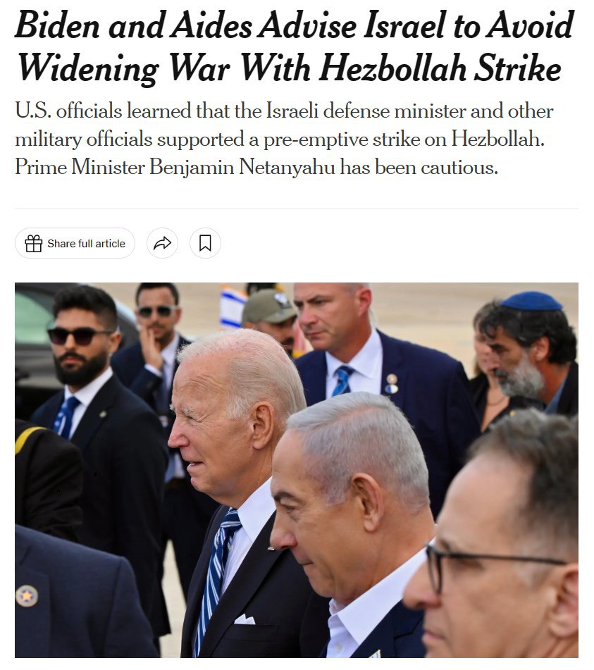 Байден та його помічники закликають Ізраїль не завдавати ударів по ліванській "Хезболлі" - The New York Times