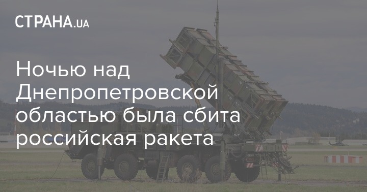 Сьогодні вночі над Синельниківським районом Дніпропетровської області було збито російську ракету.
