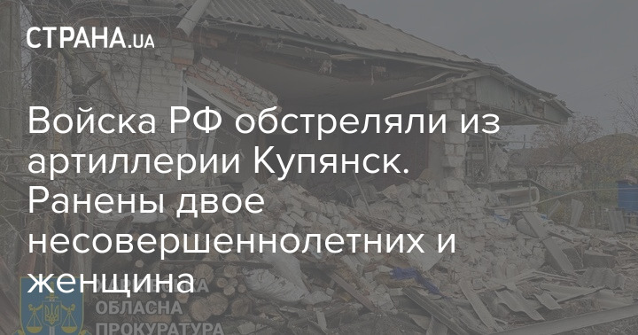 Сьогодні вранці росіяни обстріляли із артилерії Куп'янськ Харківської області. Поранено двох неповнолітніх - 15-річну дівчину та 17-річного хлопця. Також постраждала 63-річна жінка.