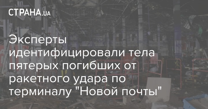 Експерти ідентифікували за зовнішніми ознаками тіла п'ятьох загиблих внаслідок ракетного удару терміналом "Нової пошти" під Харковом.