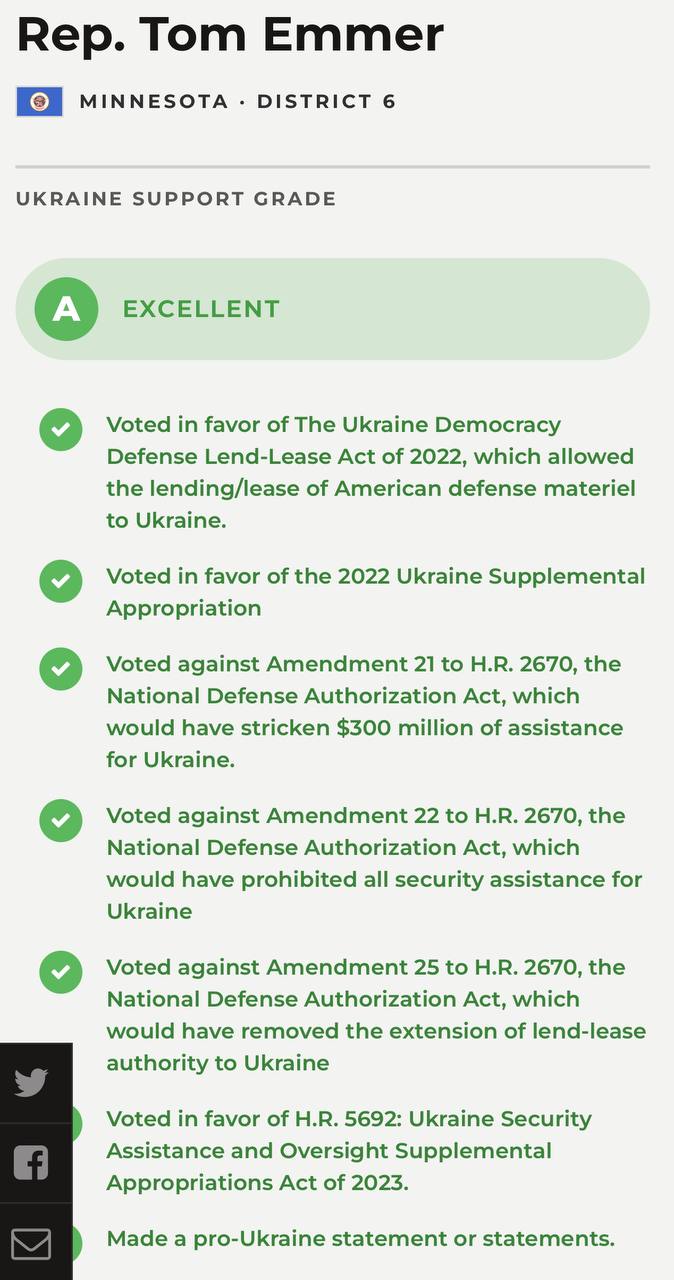 Як пишуть ЗМІ, Еммер має найвищий серед республіканських кандидатів у спікери рейтинг голосувань за допомогу Україні.