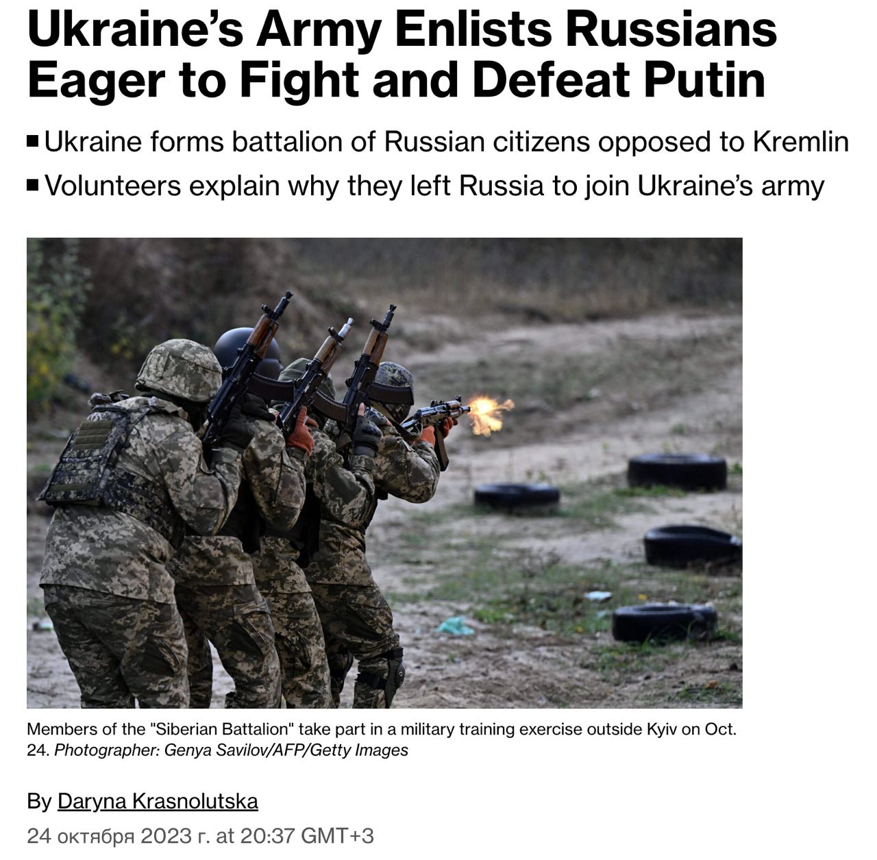 10.17 Україна сформувала батальйон "Сибір", який повністю складається з громадян РФ, які бажають боротися проти вторгнення РФ, пише Bloomberg.