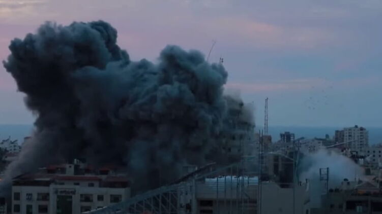 На відео, зняте телеканалом "Аль-Джазіра", снаряд проноситься темним небом над сектором Газа і вибухає в повітрі. За кілька секунд на землі видно ще один вибух.