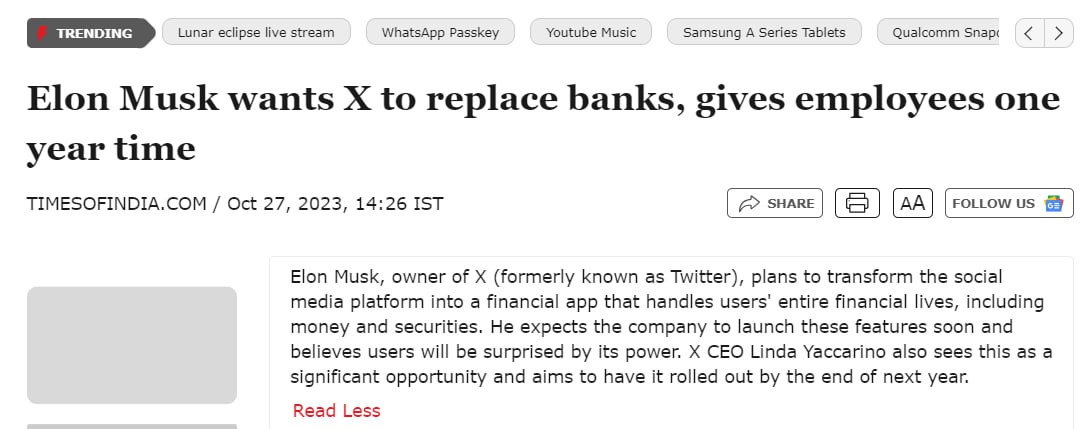 Про це повідомляє Times of India з посиланням на збори компанії Х.