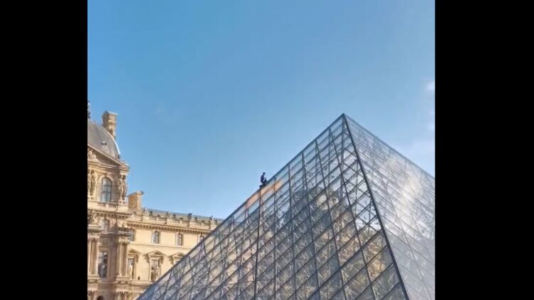 #Paris #Louvre Un activiste écolo à escalader la pyramide pic.twitter.com/v7SsRngbPp