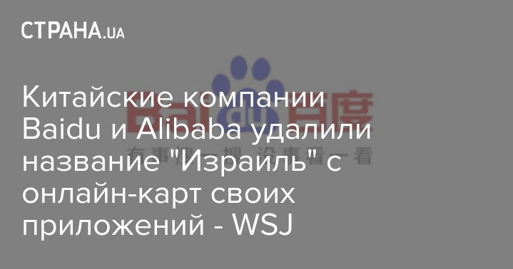 Китайські компанії Baidu та Alibaba видалили назву "Ізраїль" з онлайн-карт своїх додатків - WSJ