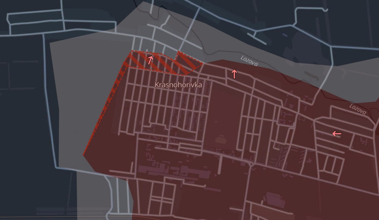 Також новий просування РФ на північних околицях Красногорівки. Більшість території міста, судячи з карти Deep State, перебуває під контролем росіян.
