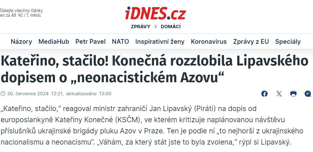 Як повідомляє видання iDNES, проти приїзду представників бригади до Праги виступила чеський депутат Європарламенту від комуністичної партії Чехії та Моравії Катержина Кінцева.