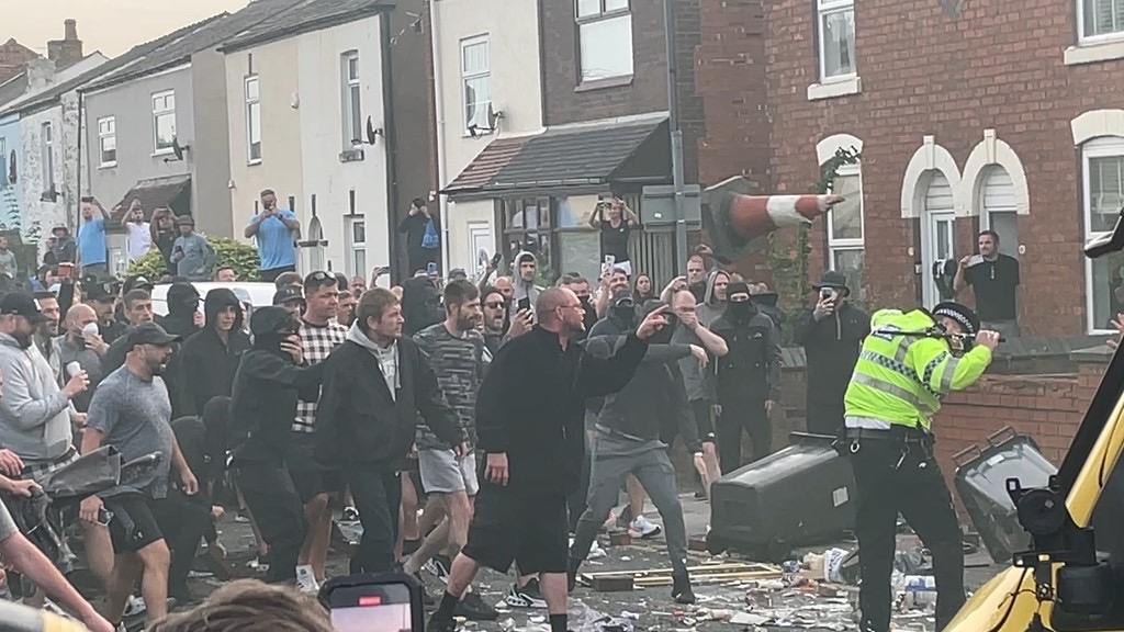 Поліція повідомила, що заворушення біля мечеті в Саутпорті почалися, коли велика група людей, ймовірно, прихильників Ліги англійської оборони (ультраправа, ісламофобна організація), стала кидати пляшки, цеглини та дорожні конуси у бік мечеті.