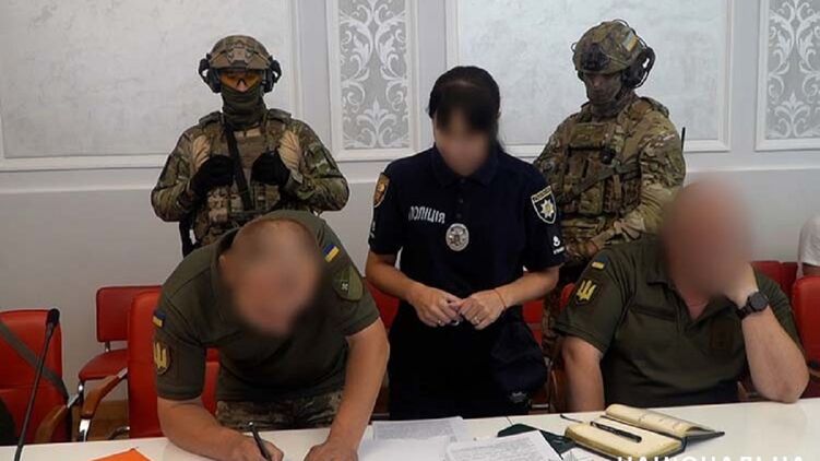 Організатору корупційної схеми поліцейські оголосили про підозру під час наради з керівниками ТЦК, що проходила у Тернопільській обласній військовій адміністрації.
