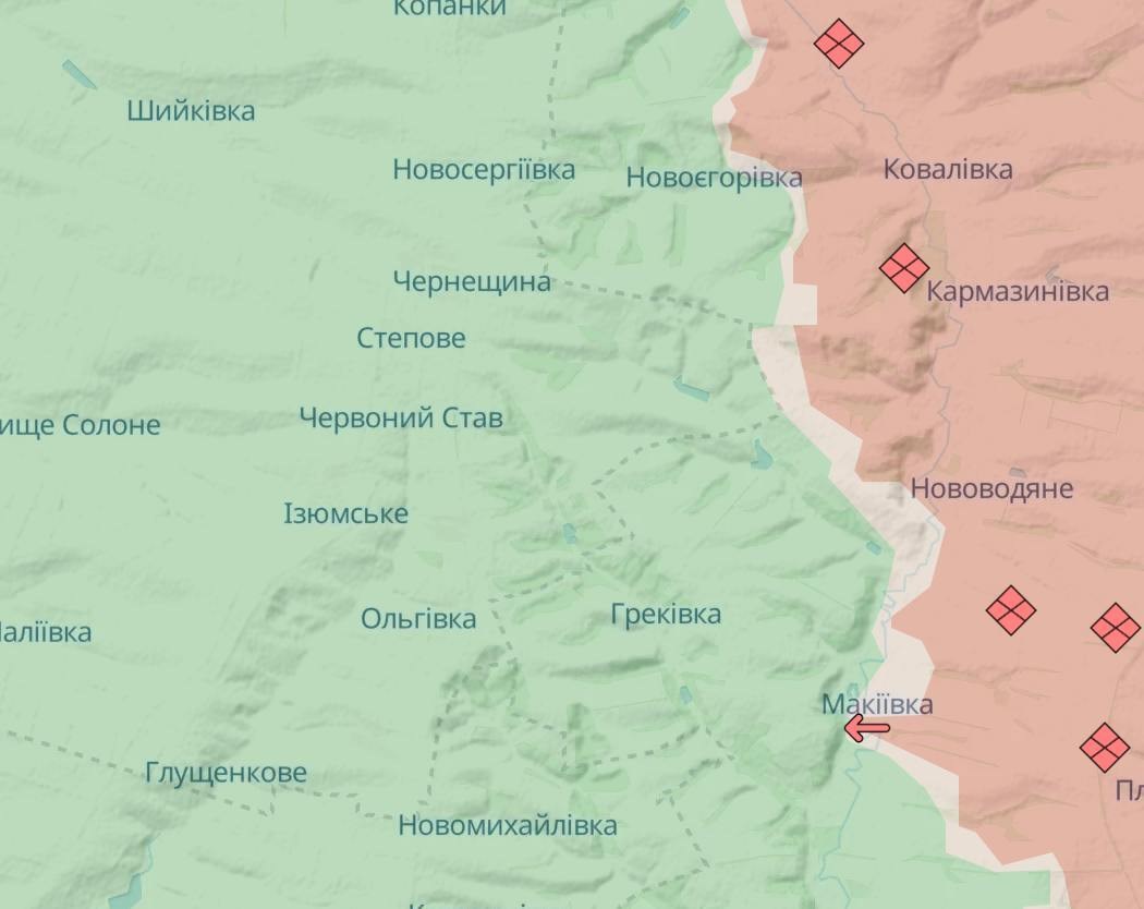 Українські військові паблики про просування росіян під Макіївкою останнім часом не писали. Z-канали сьогодні повідомляли про просування РФ у центрі села.