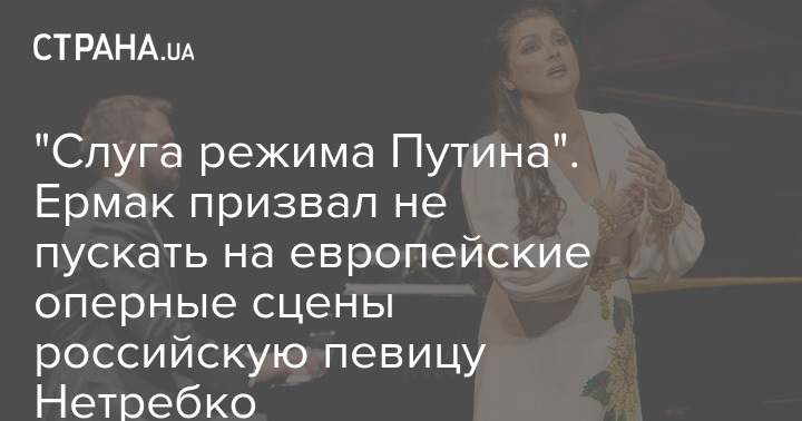 Глава Офісу президента Андрій Єрмак закликав не допустити повернення на європейські оперні сцени російської оперної співачки Анни Нетребко. Так він відреагував на повідомлення про повернення Нетребко на сцену Римської опери.
