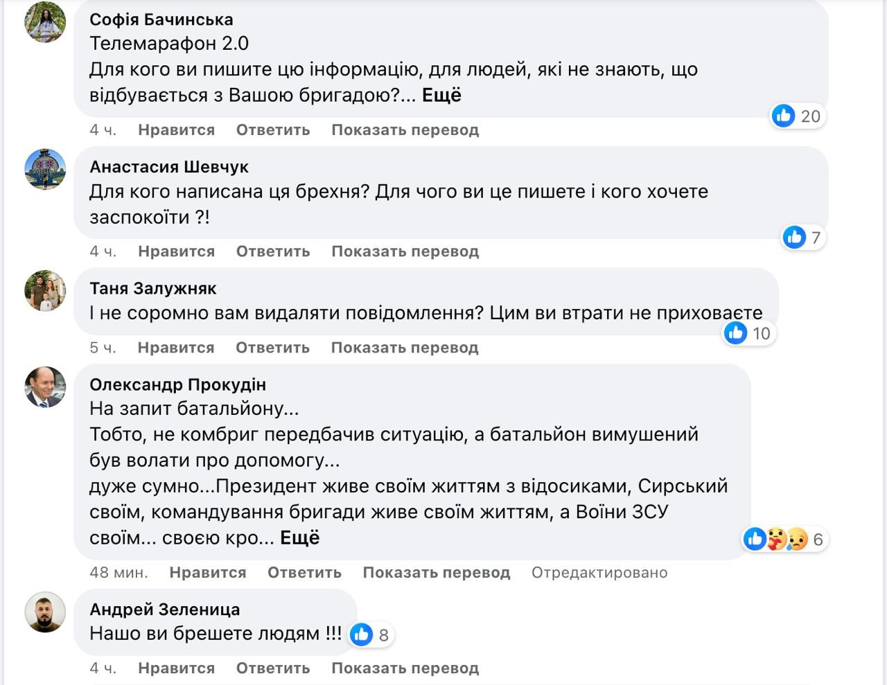 При цьому у коментарях люди звинувачують командування бригади у брехні.