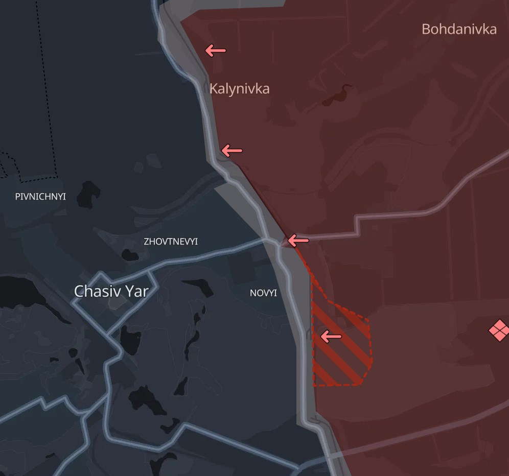 При цьому Deep State пише, що на південь від Часового Яру росіяни захопили урочище Ступки Голубовські-2.