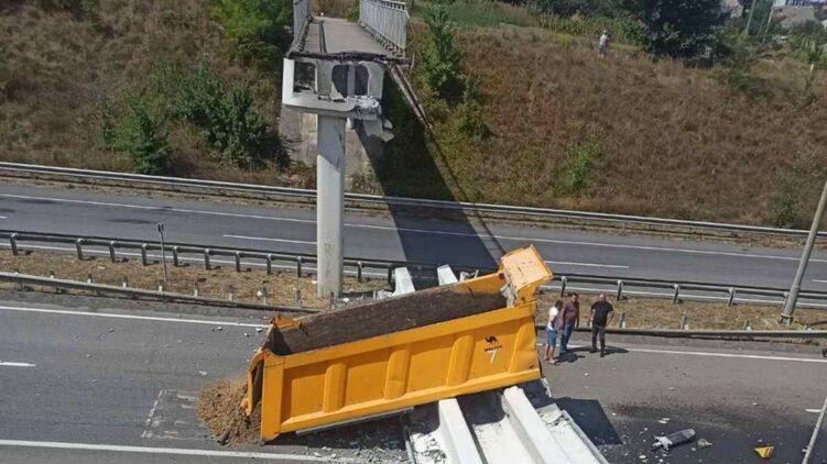 Також ми публікували відео, як у Києві самоскид став дибки, врізавшись в опору мосту.