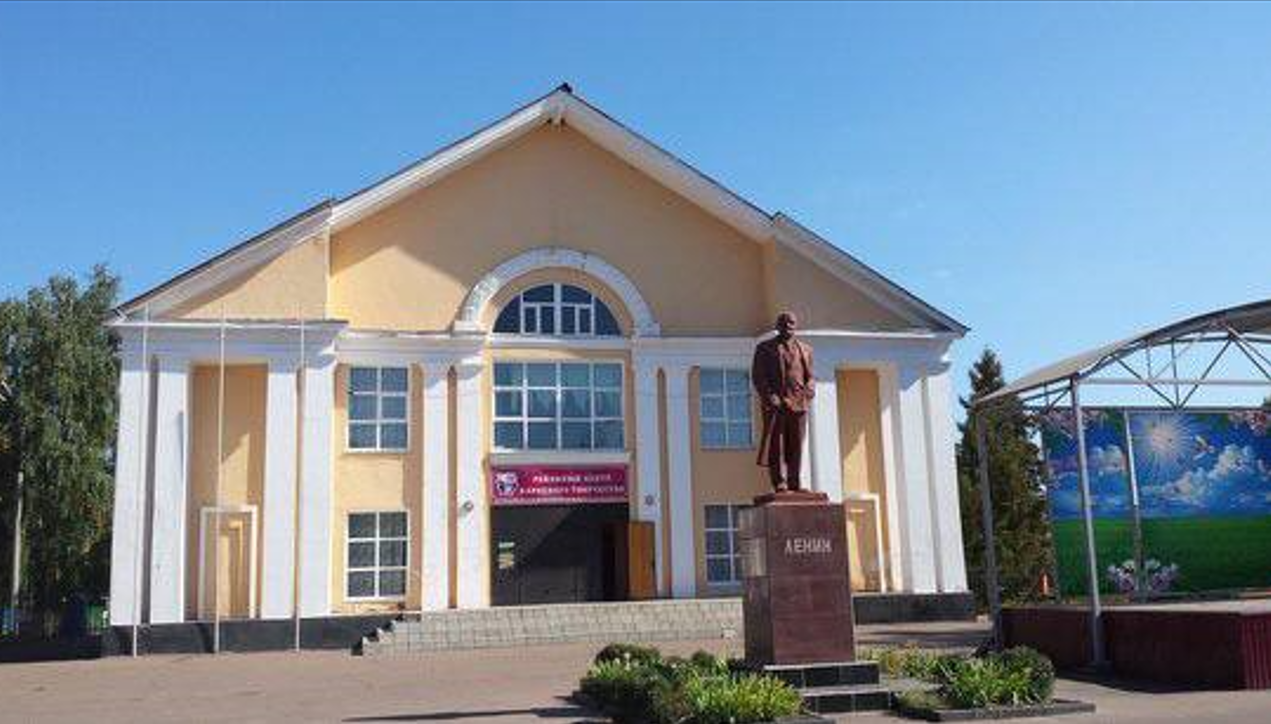 На кадрах видно пам'ятник, який схожий на Леніна, у центрі Суджі та жовту будівлю, перед якою стоїть пам'ятник (на фото).