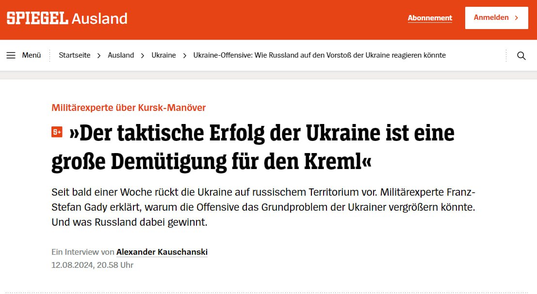 Таку думку висловив військовий експерт Франц Стефан Гаді в інтерв'ю Der Spiegel.