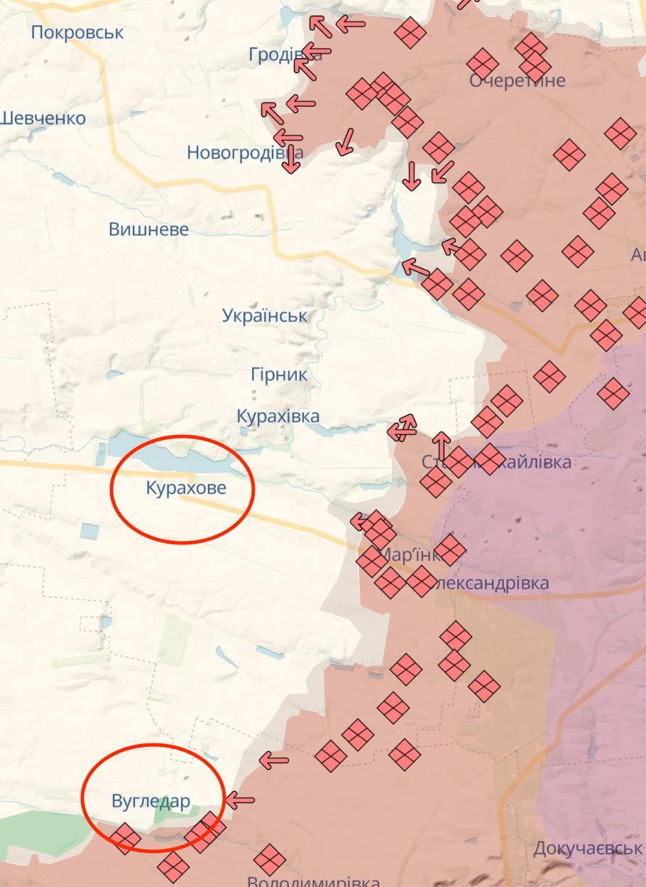 Зазначимо, що росіяни зараз більш активно наступають не у бік Мирнограда та Покровська, а у напрямку Новогродівки (тобто не на захід, а на південний захід). У чому стратегія такого наступу ми детально розбирали тут.