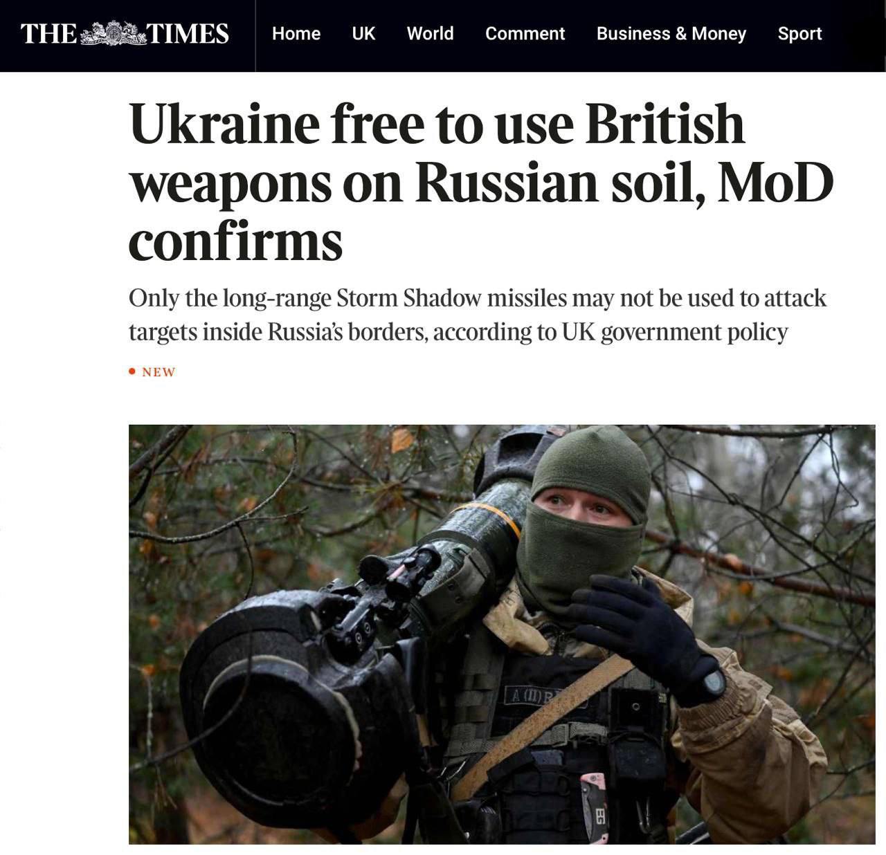 Британія підтвердила, що Україна може використовувати британську зброю на території Росії, окрім далекобійних ракет.
