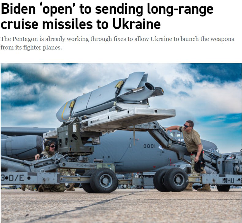 19:08 Президент США Джо Байден "відкритий" для відправлення крилатих ракет великої дальності до України, пише Politico.