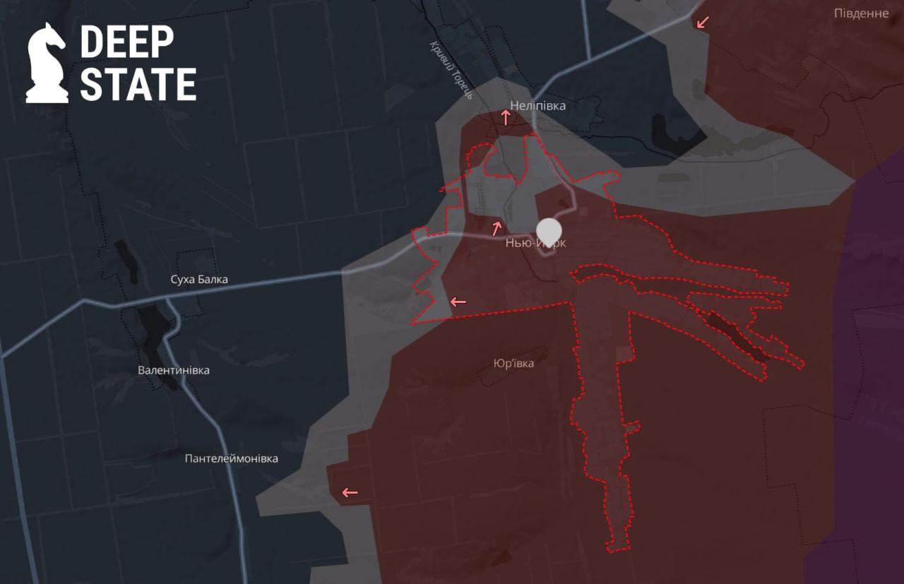 При цьому в сусідньому Нью-Йорку, за версією військового паблика Deep State, все ще тривають бої (міноборони РФ заявило про повне захоплення селища ).