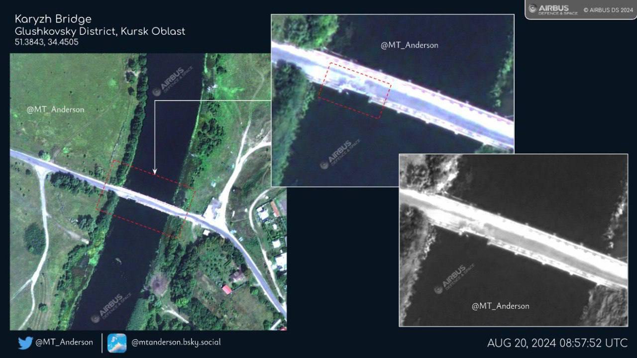 17.46 Третій міст через річку Сейм у Курській області пошкоджено, але не повністю зруйновано (як раніше заявляли російські Z-паблік). Про це свідчать супутникові фото.