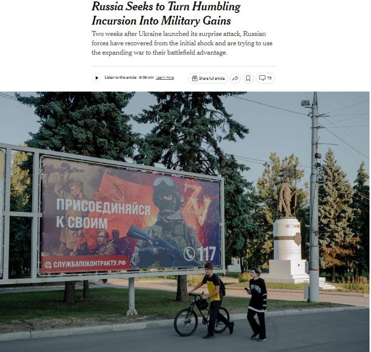 20:40 Росія прагне перетворити принизливе вторгнення в Курську область на військові успіхи, пише The New York Times.