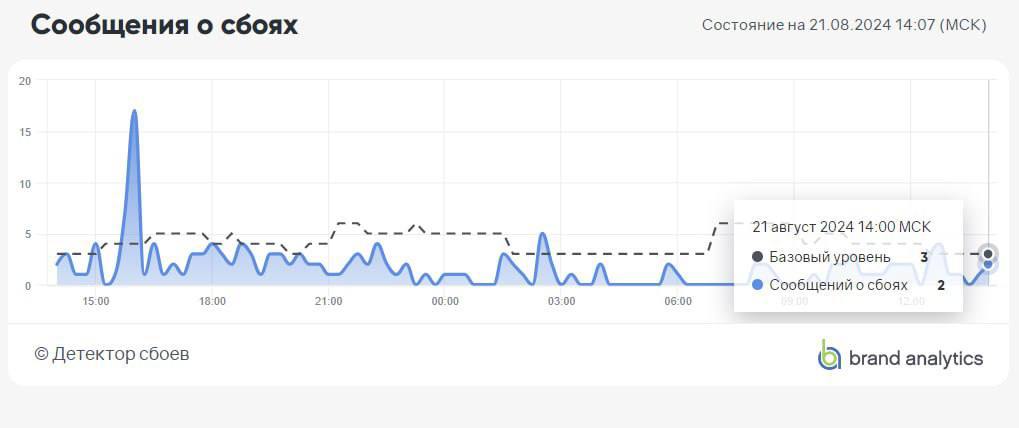 Центр моніторингу та управління мережею зв'язку загального користування (ЦМУЦ РСОП) Роскомнагляду зафіксував початок збою о 14:00.