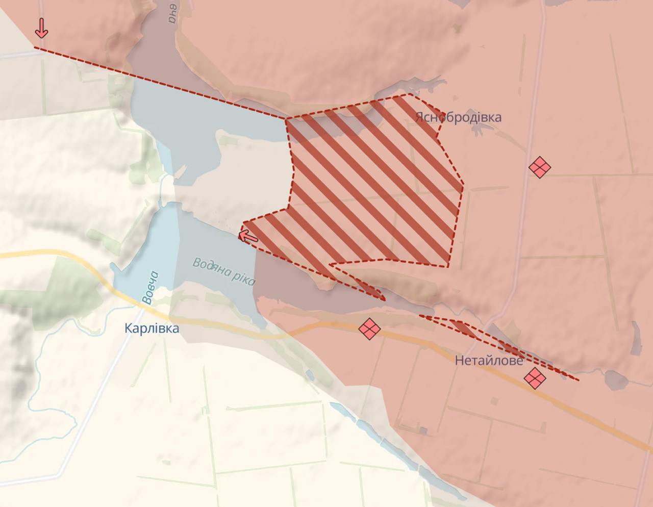 Також він повідомляє про просування росіян на тому ж напрямку у районі Калинове, Мемрика, Карлівки, Червоного Яру, Михайлівки та Новогродівки.