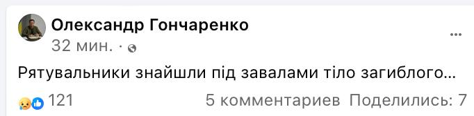 У Краматорську вчора на місці прильоту по готелю "Сапфір" знайшли тіло загиблого.