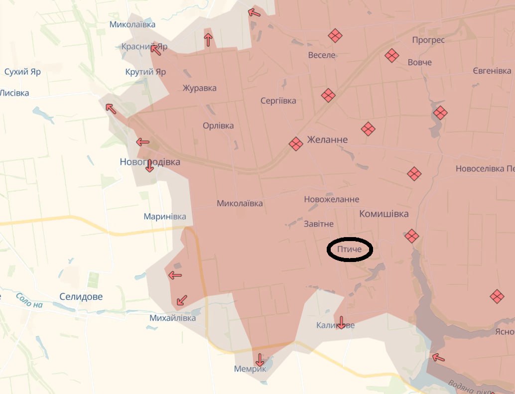 Армія РФ захопила селище Пташине на Покровському напрямі. Карта Deep State