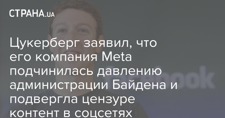 Американський медіамагнат Марк Цукерберг заявив, що його компанія Meta (Facebook та Instagram) підкорилася тиску адміністрації президента США Джо Байдена за часів пандемії Covid-19 і цензурувала певний контент у соцмережах, включаючи гумор і сатиру.