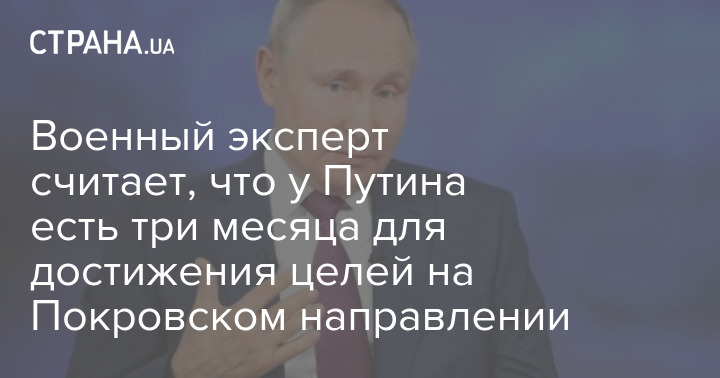 Глава Кремля Володимир Путін має 10-12 тижнів для досягнення цілей на Покровському напрямку.