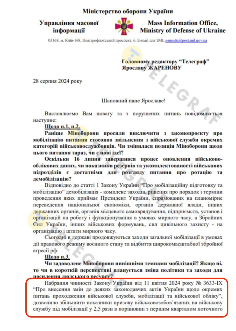 Зазначимо, що багато українських пабликів трактували відповідь МО як те, що резерви ЗСУ збільшилися в 2,5 рази. Однак у відповіді йдеться саме про темпи призову.