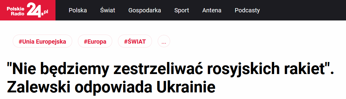 Раніше Володимир Зеленський розкритикував Польщу за те, що боїться збивати ракети над Україною без підтримки такого рішення з боку інших країн НАТО. Можливість поразки російських ракет над територією України польською ППО записана в угоді про безпеку, підписану Києвом та Варшавою.