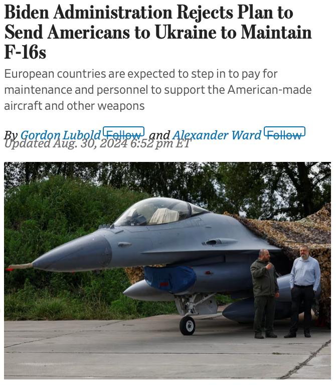 Адміністрація Байдена відмовилася відправляти в Україну техперсонал для обслуговування F-16 через побоювання щодо безпеки - WSJ