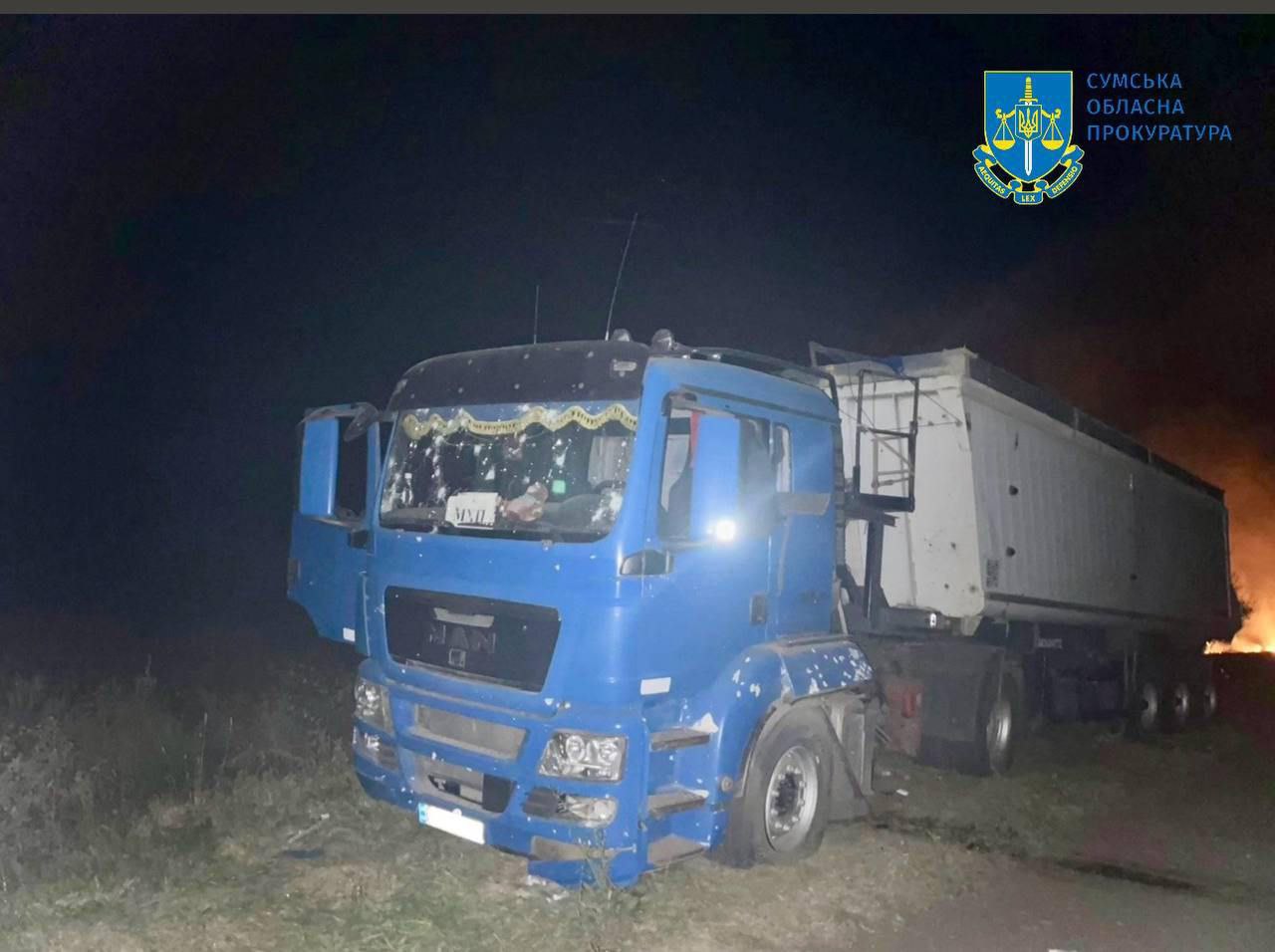 10:27 Наслідки ракетного удару по колоні зерновозів на Сумщині вчора ввечері.